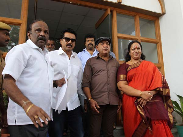 நடிகர் சங்க தலைவர் சரத்குமார், துணைத் தலைவர் விஜயகுமார், தயாரிப்பாளர் சங்க தலைவர் கேயார் ஆகியோர் இன்று எழும்பூரில் உள்ள சி.பி.சி.ஐ.டி. அலுவலகத்துக்கு சென்று ஏ.டி.ஜி.பி. அஸ்டோஸ் சுகலாவை சந்தித்தார்கள்.