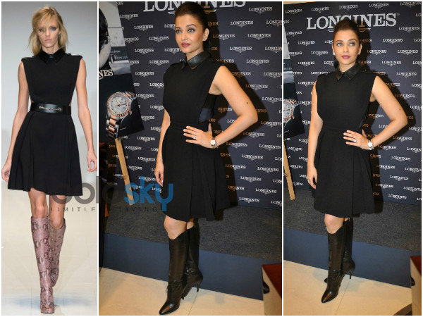 குழந்தை ஆராத்யா பிறந்ததில் இருந்து முழுக்கை வைத்த அனார்கலி அணிந்து வரும் ஐஸ் இந்த நிகழ்ச்சிக்கு முழங்கால் வரையிலான கருப்பு நிற குச்சி(Gucci) டிசைனர் கவுன் அணிந்து முழங்கால் வரையிலான கருப்பு பூட் அணிந்து வந்தார். மேலும் முடிக்கும் கருப்பு நிற டை அடித்து அம்சமாக இருந்தார்.