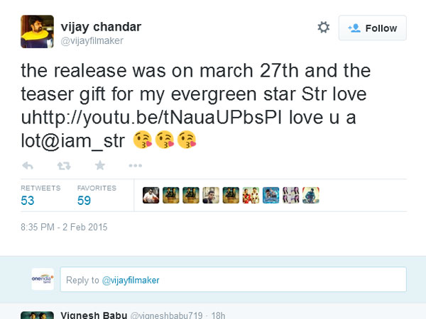 இந்நிலையில், மார்ச் 27-ல் 'வாலு' படம் ரிலீஸ் ஆகும் என்று விஜய் சந்தர் தன் ட்விட்டர் பக்கத்தில் அதிகாரப்பூர்வமாக அறிவித்துள்ளார். மேலும், சிம்பு பிறந்தநாள் பரிசாக வாலு படத்தின் டீசர் ஒன்றும் வெளியிடப்பட்டுள்ளது.