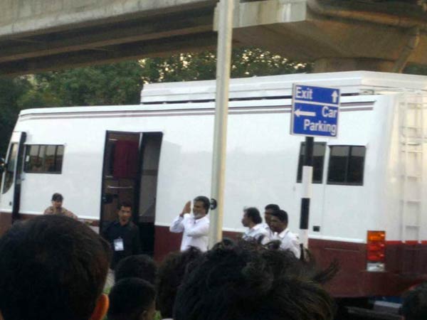 பலர் 'தலைவா தலைவா.. நல்லாருக்கீங்களா... கபாலி சூப்பர்' என்று குரல் கொடுக்க புன்னகையுடன் அனைவரையும் கையெடுத்துக் கும்பிட்டார் ரஜினி.